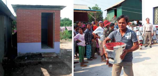 左:為貧困戶修建的廁所;右:村民領(lǐng)灶頭