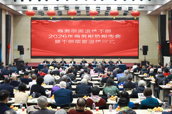 商務部舉行離退休干部2026年商務形勢報告會暨干部榮譽退休儀式